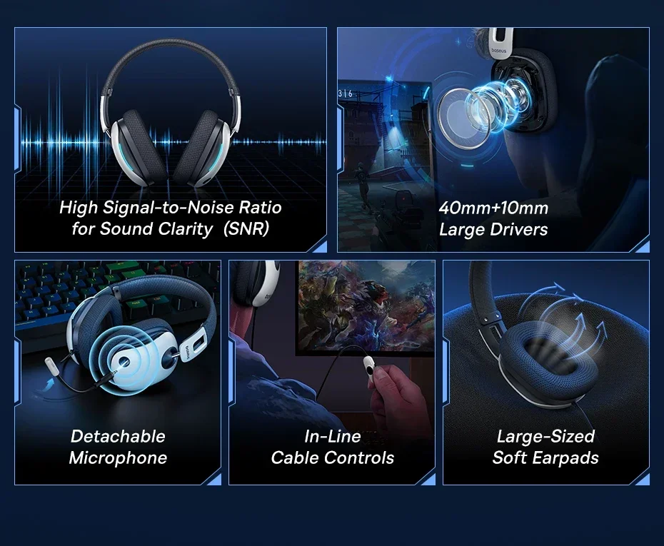 Step up your gaming experience with the Baseus GoPlay 1+ Max. Designed for gamers, this wired headset delivers clear, immersive sound through a 40mm dynamic driver and a frequency range of 20Hz–20kHz.