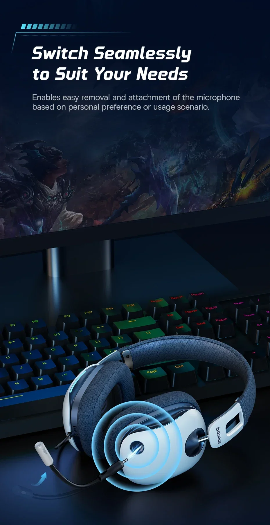 Baseus GoPlay 1 Max Gaming Wired Headphones 7.1 Virtual Surround Earphone 3.5mm & USB-A Plug Detachabie Microphone Gamer Headset